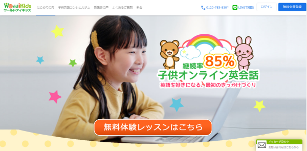 ワールドアイキッズの創業、及び、口コミ、対象年齢、講師、レッスンと効果、教材、料金、通信システム、予約システム、特典、無料体験の各項目について、わかりやすく解説します。